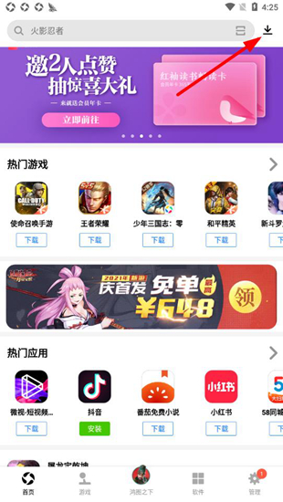 1. 想知道自己都下过些什么?很简单,回到软件的主界面,目光移到右上角,那里有一个很形象的下载箭头图标,点一下就行。