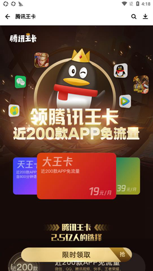 2. 接下来,系统会自动带你跳转到一个关于大王卡的申请页面。你需要按照指引申请并成功办理这张电话卡。办好之后,你再通过应用宝下载指定的那些APP时,就不会消耗你的手机流量了。