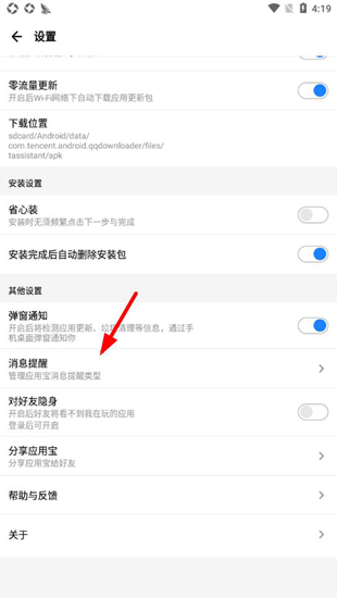 1. 我们需要先进入应用的设置中心,在设置列表里仔细找一找,就能看到一个名为【消息提醒】的选项。