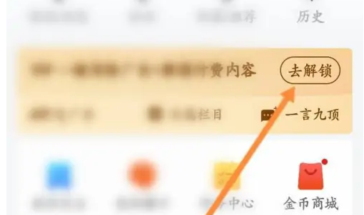 第二步、进入“我的”页面后,点击上方的“去解锁”按钮。