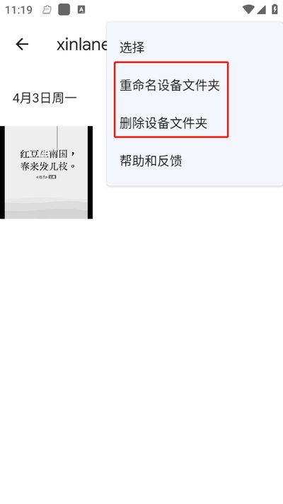 2、进入文件夹管理界面后,你可以对存放图片的文件夹进行重命名,或者直接删除整个设备文件夹。