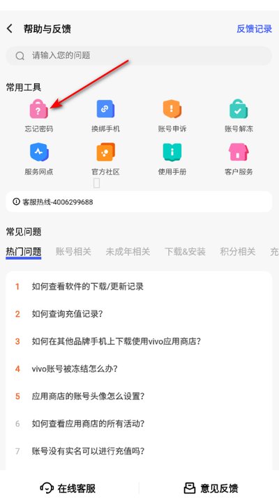 3、接着,在帮助中心的问题列表里,选择关于“忘记密码”的条目。