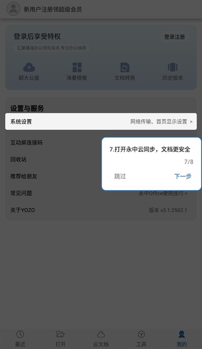 6、建议开启永中云同步服务,这样你的所有文档都会获得云端备份,数据安全更有保障。