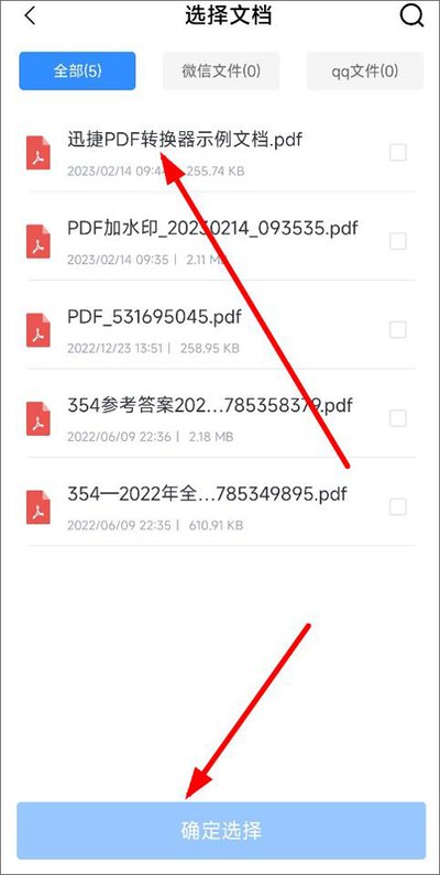 2、进入文件选择界面后,你可以从手机本地、微信或者QQ聊天记录里找到带有水印的文档,点击确认并打开它。