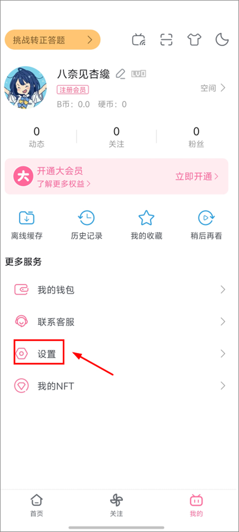 1、打开哔哩哔哩谷歌版客户端,目光移到屏幕的右下角,找到并点击写着“我的”按钮,这样你就能进入到个人中心页面。