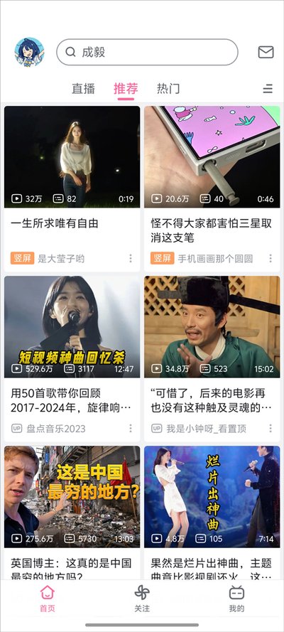 3、主界面的布局也经过了简化。底部的导航栏去掉了“会员购”这个入口,让界面功能更加聚焦于视频内容本身。同时,顶部的“游戏”按钮也被移除,避免了不必要的引导,让整个视觉焦点都回归到你所关心的内容上。