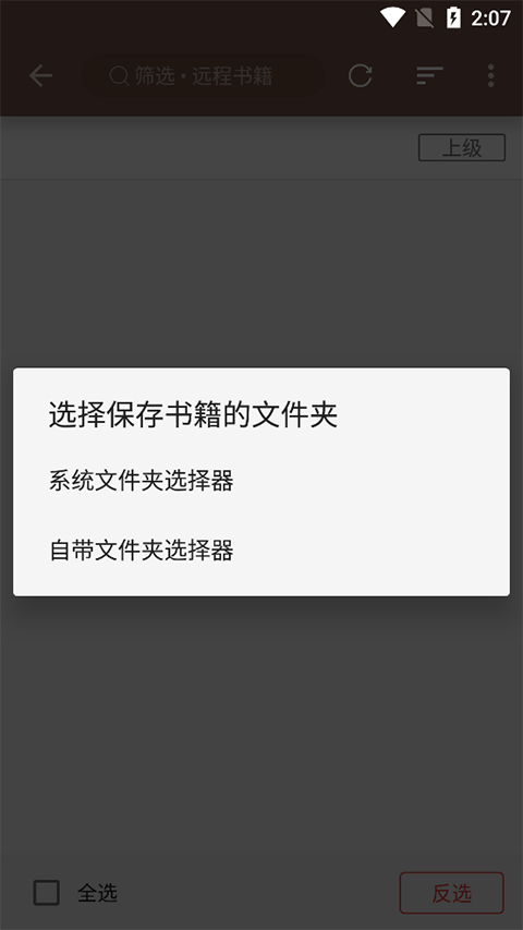 4、在文件浏览器中找到并选中你存放书籍的那个文件夹,确认之后,应用就会开始扫描并导入文件夹里的内容了。