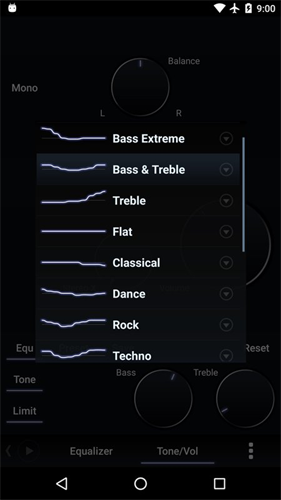 3、进入均衡器页面后,你可以通过点击旋钮的上方或下方来进行细微的调整。根据自己的听音喜好,可以调配出多种完全不同的声音风格。