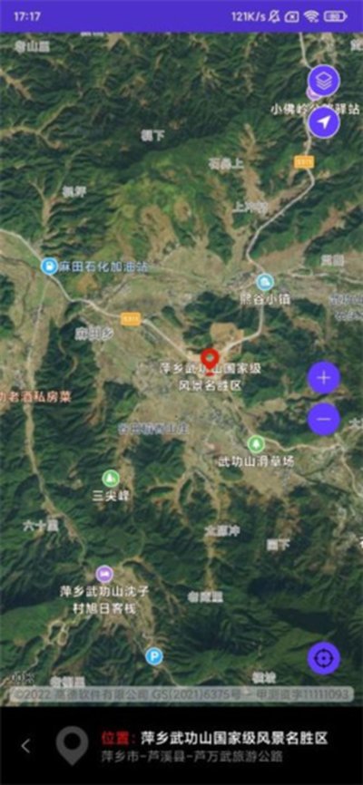 4、搜索到地点后,通过双指缩放手势,就可以放大地图,查看细节丰富的实景图像。