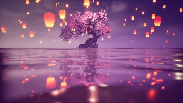 从同乐大戏台出来,远远就能望见灯火璀璨的华灯会和花瓣纷飞的祈愿树。