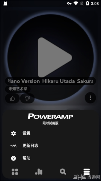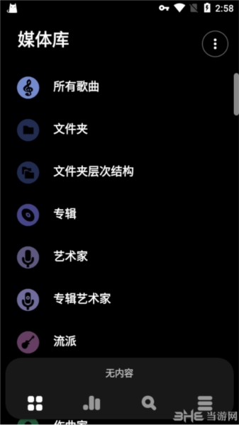 1、当前显示的是Poweramp应用程序的主界面。。你可以在这里左右滑动来切换歌曲,或者多滑几次来切换不同的分类。通过滑动或点击屏幕,还能显示出当前所在的分类。