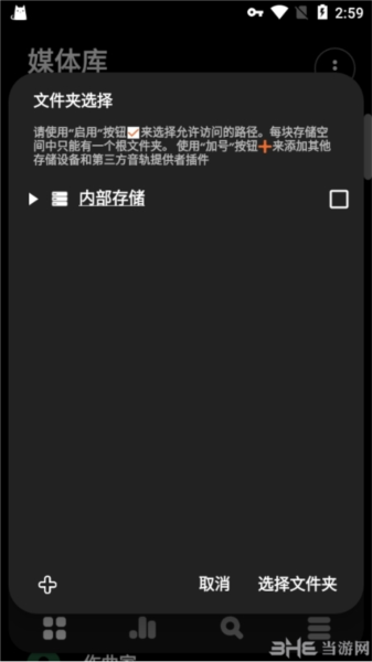 4、找到你存放音乐文件的那个文件夹并选中它,软件就会快速把里面的歌曲导入了。当然,你也可以选择让它扫描整个手机的存储目录,不过这样会花费比较长的时间。