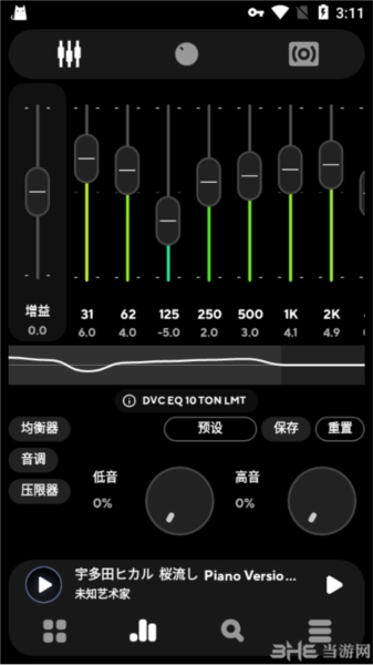 特点:这种设置下的低音效果非常醇厚,充满力量感但又不会糊成一片,高音部分则清澈而富有穿透力,不会让人觉得刺耳。你可以把它和软件内置的预设方案对比一下。如果不太喜欢重低音,也可以随时自己动手调节高低音旋钮。调校后的音质绝对能超越市面上大多数MP3播放器!