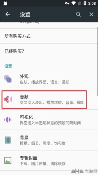 5、在设置页面里,你可以对软件进行全方位的个性化定制,比如调整外观主题、音频参数、可视化效果、背景、专辑封面显示方式、媒体库扫描规则、耳机/蓝牙控制以及锁屏选项等。
