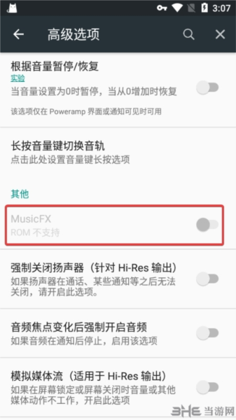 4、在高级选项的“其他”项目里,找到并开启“MusicFX”这个开关,就能启用杜比音效了。如果你的设备不支持杜比音效,这个选项可能会是灰色不可点击的状态。