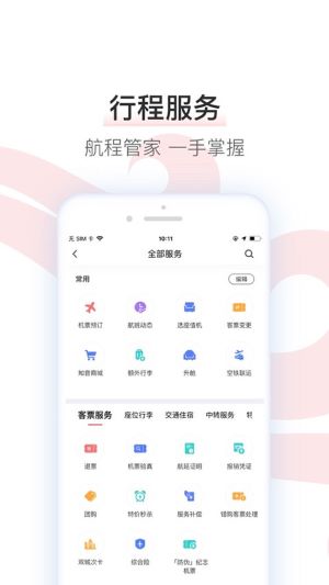 首先,打开国航App并进入主界面,在功能区找到并点击“全部服务”的图标。