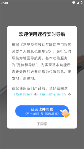 想去哪儿?只需在顶部的搜索栏输入目的地,速行实时导航就能立刻为你规划出最佳路线,带你轻松出发。这不仅仅是一个导航工具,在功能页面,我们还为你精心准备了各式各样的旅游攻略,让你随时查阅,探索未知的美好。当然,初次使用时别忘了先同意隐私政策和用户协议,让我们更好地为你保驾护航。