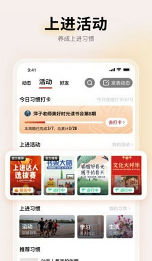 这款应用最吸引人的地方,就是它为你创造了一个充满正能量的社交环境。在这里,你遇到的每一个人,都可能是在某个领域默默耕耘、拼命提升自己的同路人。大家可以很自然地聊起各自的奋斗故事,分享学习路上的心得和经验,这种真诚的交流往往能带来意想不到的启发。当你在上进的路上感到疲惫时,有这样一群伙伴相互打气、彼此扶持,感觉会很不一样。更棒的是,它还把线上的交流延伸到了现实生活中。通过组织各种丰富多彩的活动,比如激发思辨的上进读书会、挥洒汗水的上进跑团,还有干货满满的上进训练营,为大家提供了更多面对面交流的机会,让朋友间的距离变得更近。在这里,你收获的不仅仅是知识或学历上的进步,更是一种由内而外的成长与蜕变。