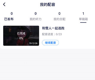 3、对于已经保存的合配作品,您可以进入“我的配音”,在“我的合配”或“草稿箱”中找到该视频,然后选择并将其删除。。