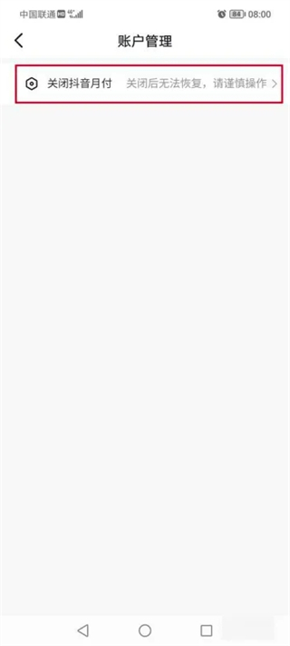 6、进入账户管理中心,你会看到一个名为“关闭抖音月付”的选项,点击它。