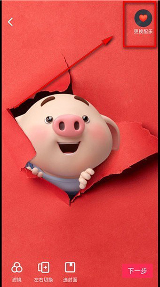 6、现在,你会看到一个预览界面,在右上角有一个音乐符号的图标,旁边写着“更换配乐”,点击它。