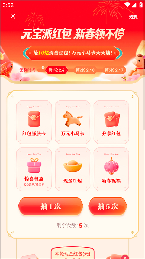 2、进入活动页面,通过抽奖获取现金红包。