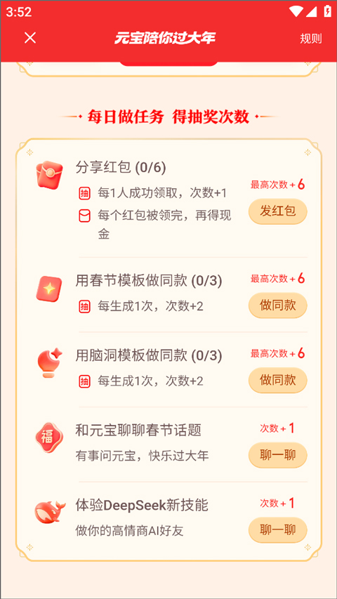 3、完成每日任务可获得更多抽奖次数。