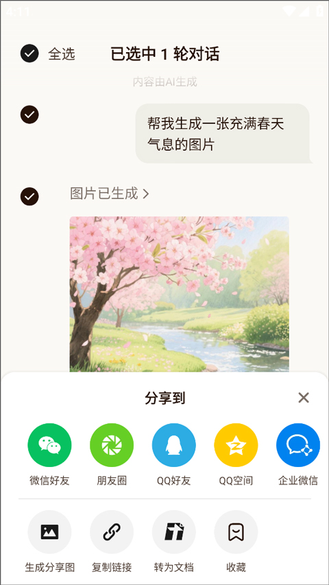 4、可对结果进行编辑、分享或重新生成。