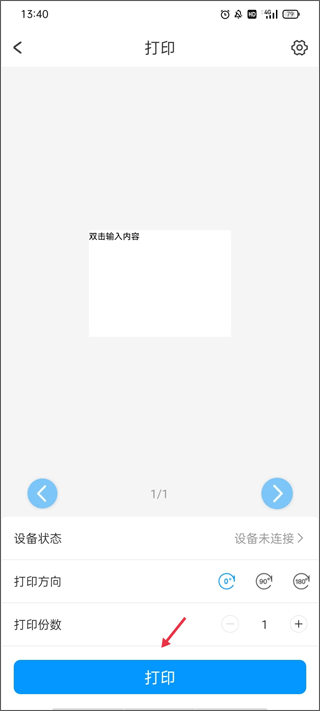 4、编辑完成后,点击屏幕中央的打印机图标,设定好打印设备和打印份数,最后点击【打印】就能出纸了。