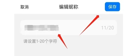 4、进入到编辑昵称界面,输入新昵称后,点击保存按钮即可。