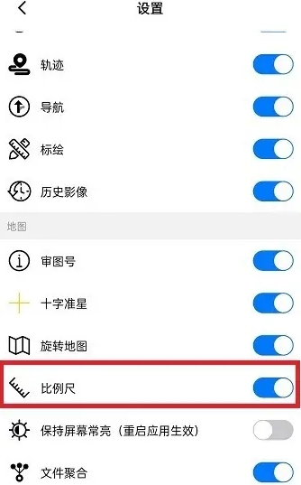 3、进入设置页面后,打开“比例尺”右侧的开关即可开启比例尺。