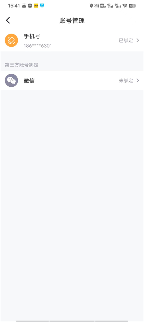 2、进入到设置页面之后,先点击“账号管理”这一项,然后选择列表中的“微信”。