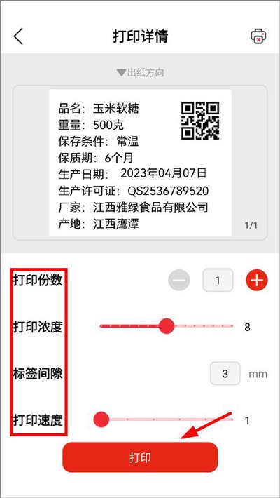 5、如果选择打印,会先进入一个最终预览的界面。在这里你可以设定要打印的份数、调整打印的深浅浓度,以及设置标签间的距离等参数,一切就绪后,点击“打印”即可。
