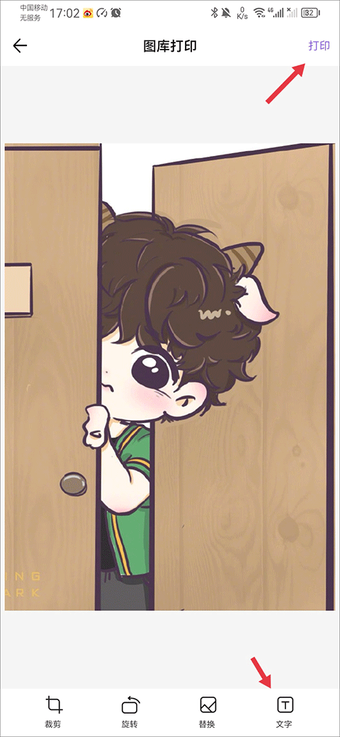 4、如果你想在照片上加点文字做个纪念,这里也提供了添加文字的功能。编辑满意后,点击屏幕右上角的“打印”按钮。