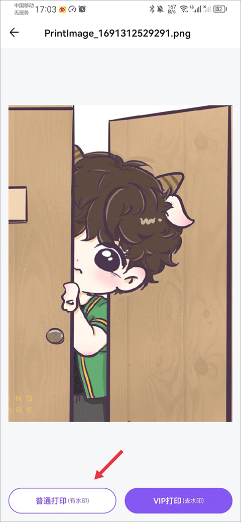 5、这时会弹出一个选项,直接点击“普通打印”就可以开始了。如果你不希望打印出来的成品带有应用的水印,可以选择VIP打印,不过这需要先成为会员才能使用。