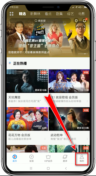 1、第一步,打开你的优酷app,然后点击屏幕右下角的【我的】。