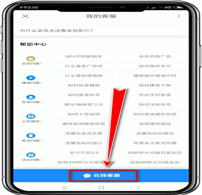 3、接着,将页面一直向下滑动,在底部找到并点击【在线客服】。