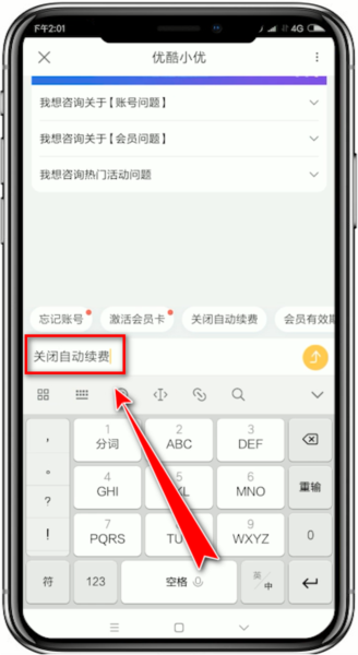 4、进入客服对话界面后,在下方的输入框里输入【关闭自动续费】并发送。