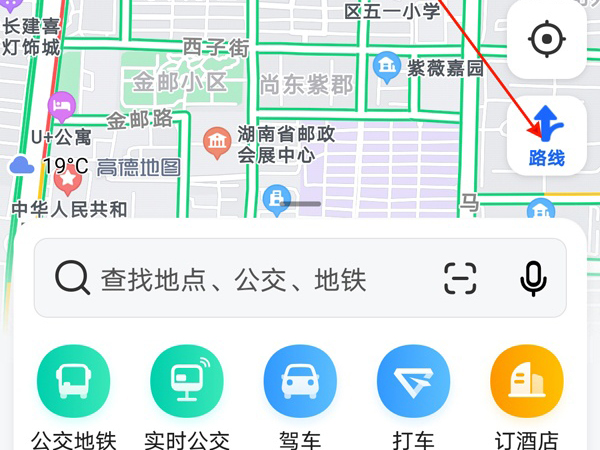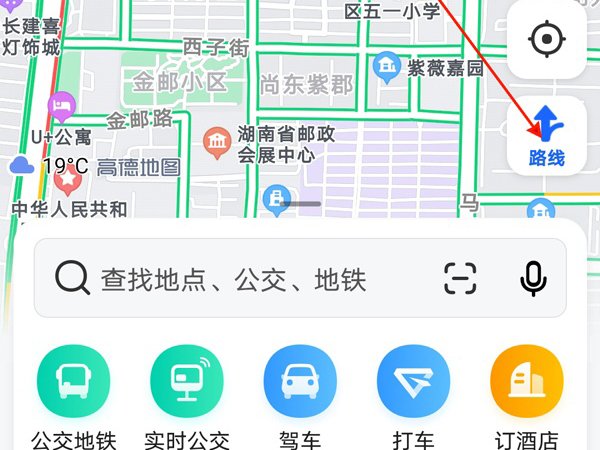 1、首先打开应用,在主界面上找到并点击“路线”选项。