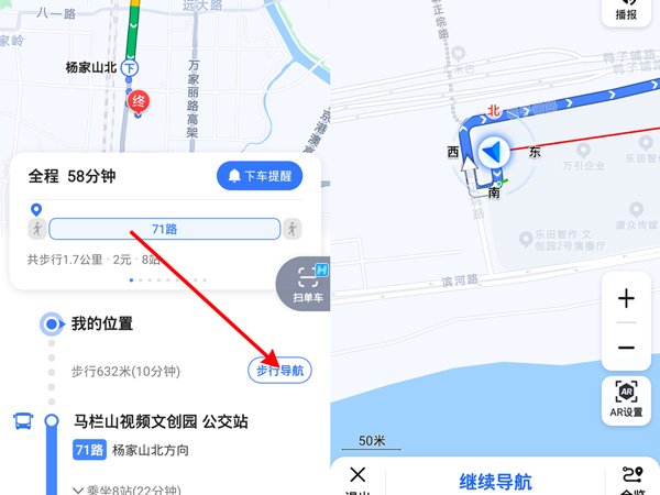 3、在路线方案中,选择“步行导航”模式,然后点击界面上的“AR设置”按钮。