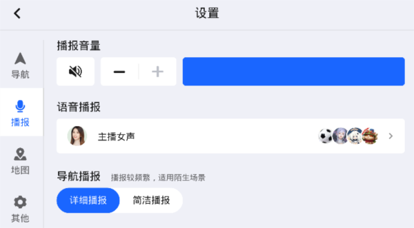 5、进入播报功能的设置,你可以挑选自己喜欢的导航语音包。