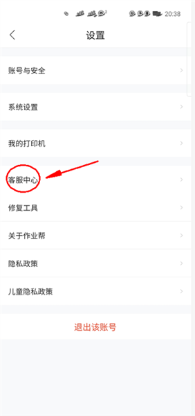 3、在设置页面里,找到并点击【客服中心】这一项。