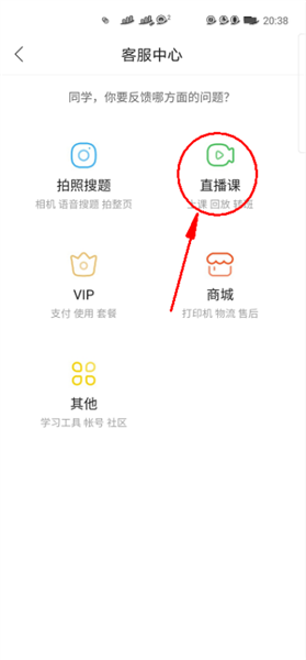 4、进入客服中心后,选择与你问题相关的【直播课】分类。