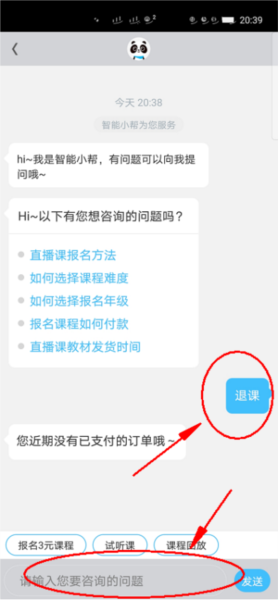 5、最后,在输入框里详细描述你遇到的问题和退课需求,然后发送给客服,耐心等待他们为你处理就可以了。