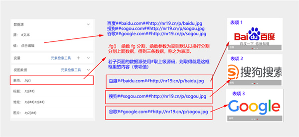 从这张图里可以看出来,无论你的数据源是什么类型,最终目的都是为了获取一段文本,然后交给页面渲染器去解析,最后把界面画出来。对了,数据源里的“#爬虫”,虽然叫爬虫,但和传统意义上的爬虫既有关系又不太一样。下面是爬虫的配置图解: