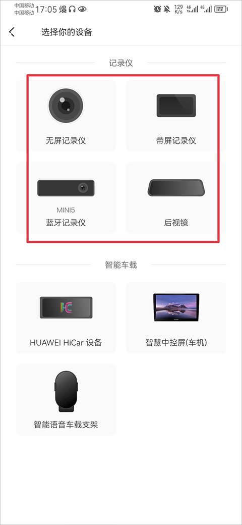 2、然后会让你选行车记录仪的具体型号,照着自己的设备选就行。