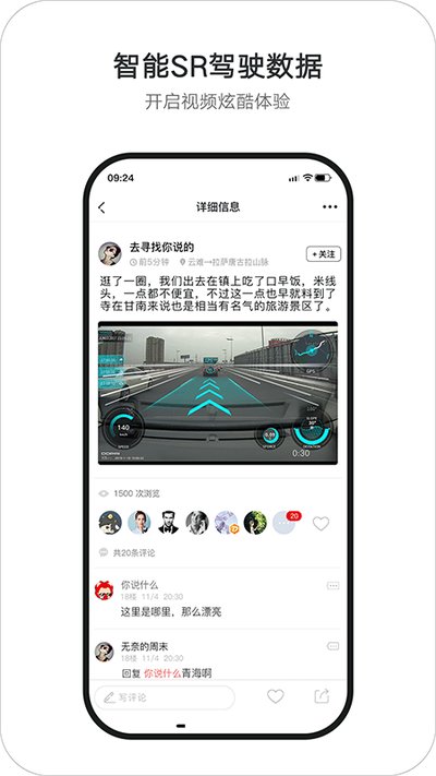 新版本主推一个叫“在路上”的社区。你可以在这里晒自己开车路上的见闻,也能认识些新的自驾爱好者,跟全国的车友在线互动,约个跑山、约个饭什么的都方便。