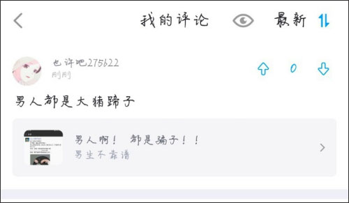 3、在“我的评论”页面中,系统会列出你曾经发表过评论的所有帖子。此时,请留意并点击页面上方那个小小的“眼睛”形状的图标。