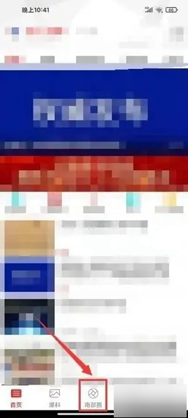 1.第一步,先打开云上南部App,在主页下方找到并点击【南部圈】这个选项。