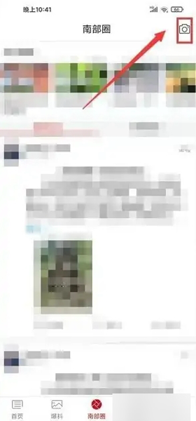 2.第二步,进入到南部圈的界面后,请留意并点击右上角那个【相机图标】。